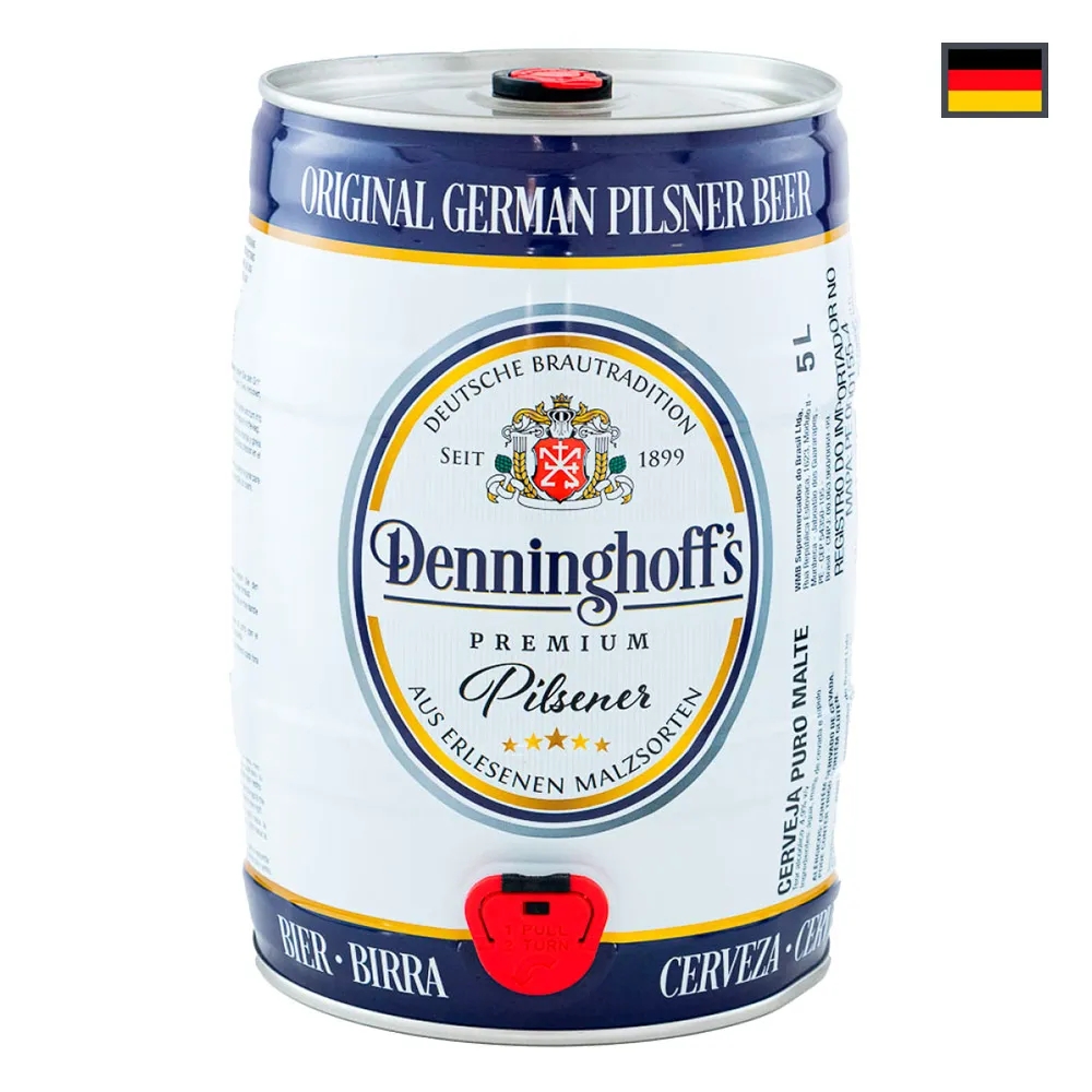 O Barril de Cerveja Alemã Denninghoffs 5 Litros – Pilsner oferece uma experiência autêntica da tradicional cerveja alemã, reconhecida por seu sabor equilibrado, refrescante e levemente amargo, típico do estilo Pilsner.