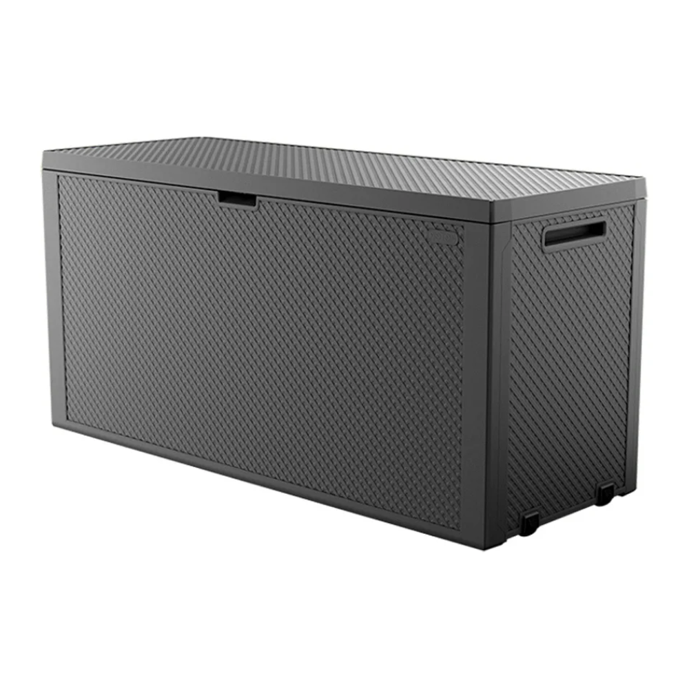 Caixa de armazenamento Emily é ideal para manter pátios ou decks organizados, com capacidade de 277L, acomoda almofadas, brinquedos e materiais de jardinagem. Montagem fácil em minutos sem necessidade de ferramentas especiais e suporta até 80 kg em sua superfície.