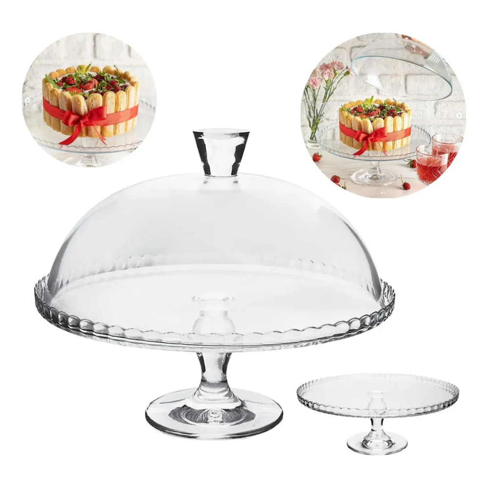 A Boleira de Vidro com Pé e Tampa 32cm é perfeita para servir e conservar bolos, tortas e sobremesas com elegância e praticidade. Seu design clássico com pé elevado valoriza a apresentação à mesa, enquanto a tampa ajuda a proteger e manter os alimentos frescos por mais tempo.