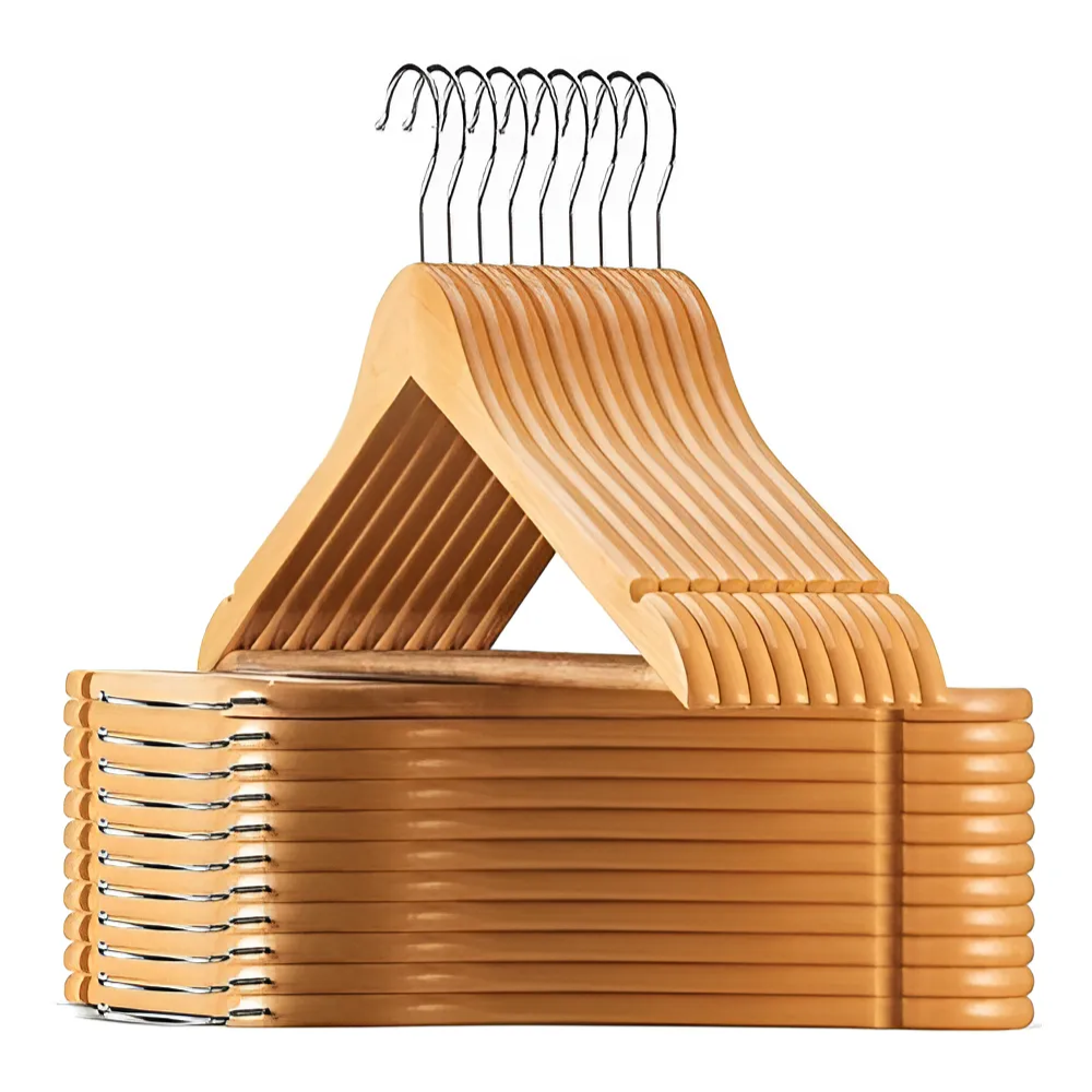 Cabide de Madeira Marfim com verniz possui gancho de ferro cromado, desenvolvido para ser utilizado com qualquer tipo de roupa, das mais pesadas até as mais leves. Apresenta acabamento de alta qualidade que não desfia nem puxa o tecido das roupas.