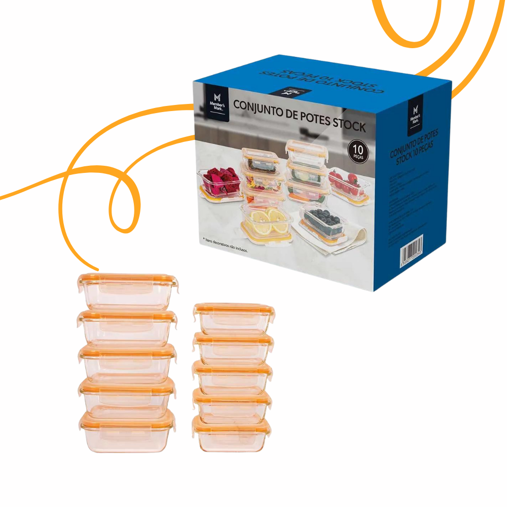 Conjunto 10 Potes Herméticos De Vidro 370ml Member's Mark