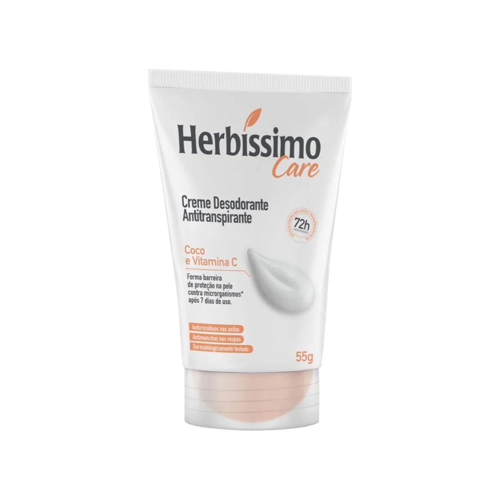 O Herbíssimo Creme Desodorante Coco e Vitamina C oferece proteção eficaz contra odores, aliado a um cuidado especial para a pele.