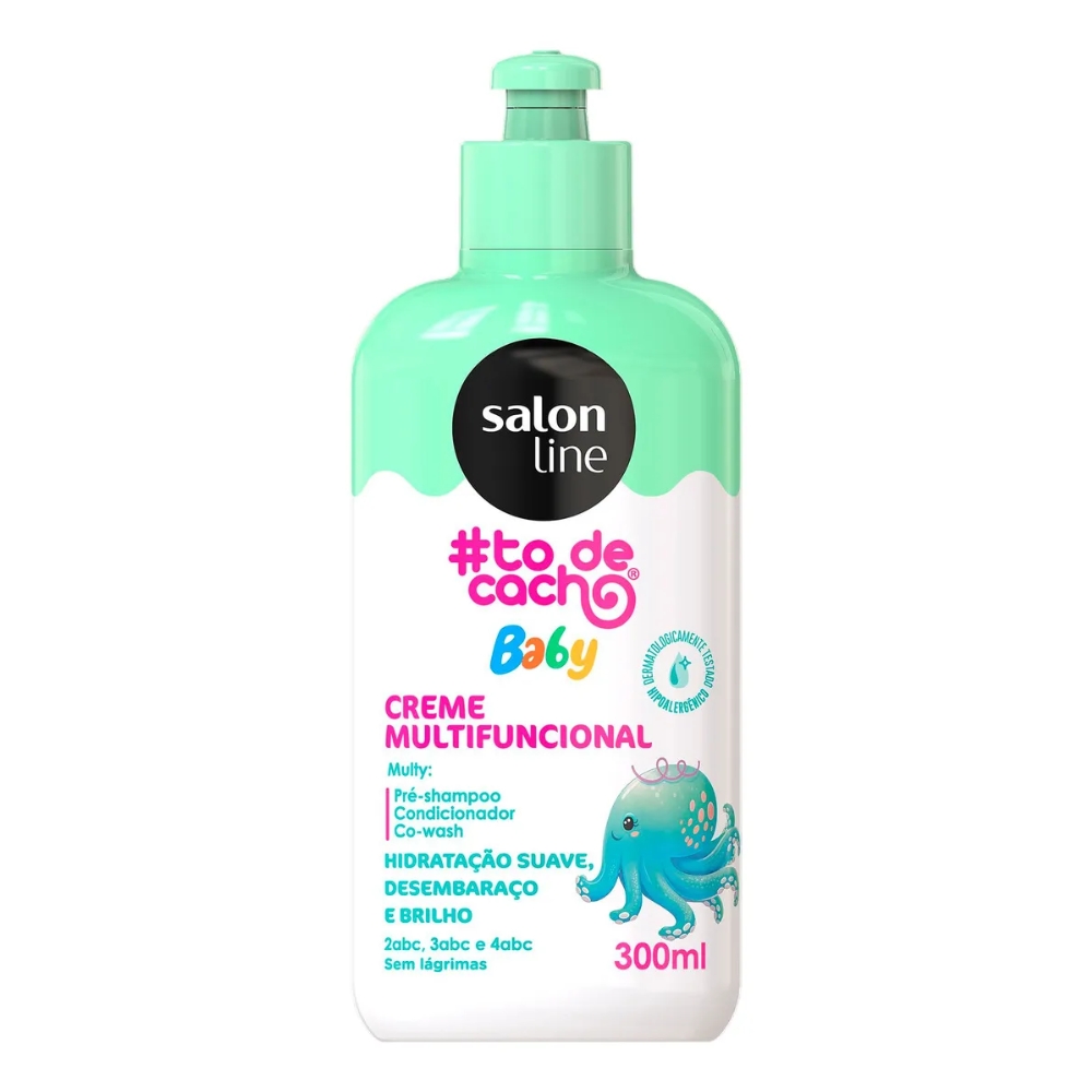 O Creme Multifuncional Baby #TôDeCachinho Salon Line 300ml foi desenvolvido especialmente para cuidar dos cachinhos dos bebês com suavidade e segurança. Sua fórmula delicada ajuda a hidratar, desembaraçar e definir os fios sem pesar, mantendo os cabelos macios, brilhantes e sem frizz.