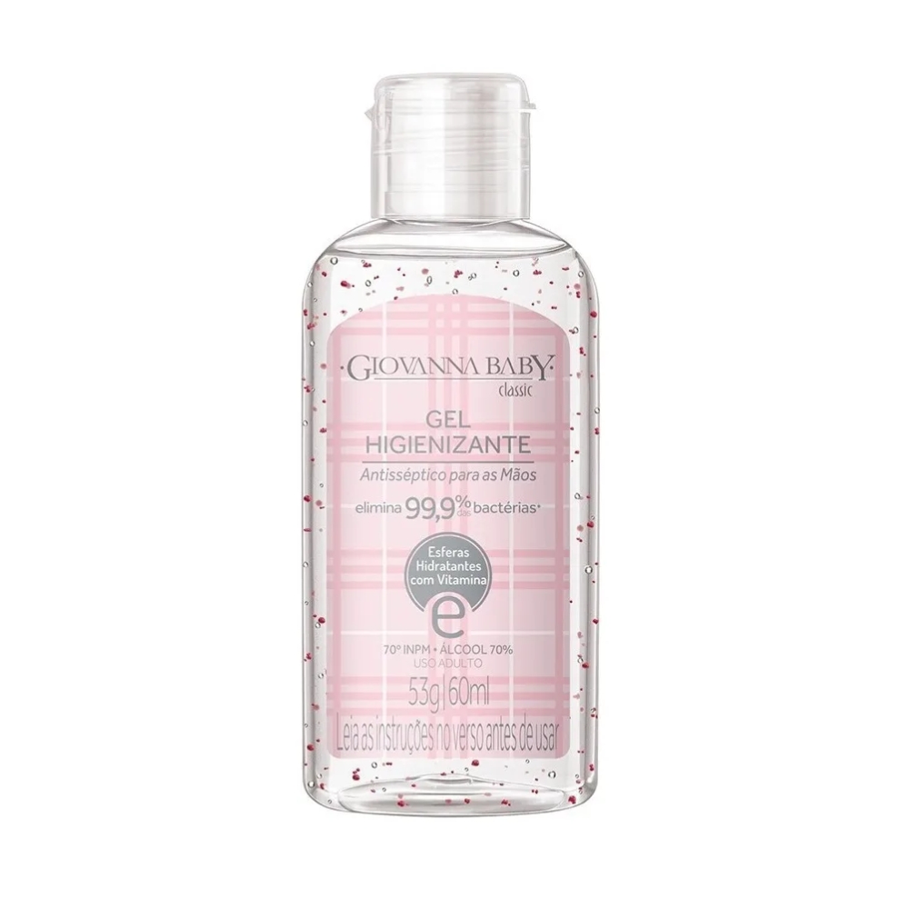 O Gel Higienizante Giovanna Baby 60ml com partículas hidratantes une proteção, cuidado e um toque especial de hidratação, deixando as mãos limpas, macias e levemente perfumadas.