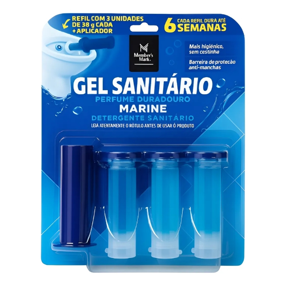 O Gel Sanitário Refil com Aplicador Member’s Mark – Kit com 3 Unidades de 38g é ideal para manter o vaso sanitário limpo, perfumado e higienizado a cada descarga. Sua fórmula em gel ajuda a combater odores, auxilia na limpeza e proporciona sensação de frescor contínuo no banheiro.