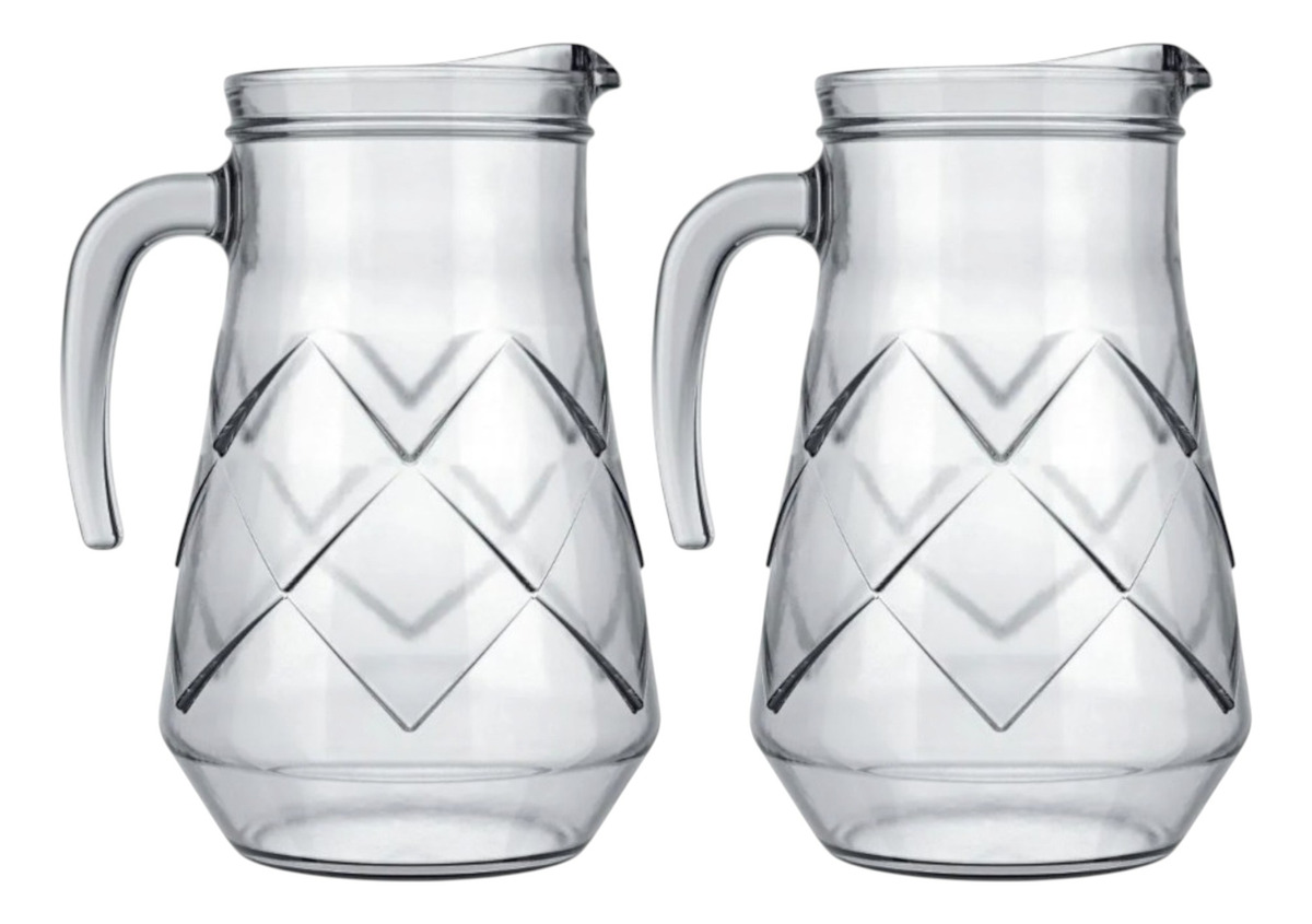 Conteúdo - 2 unidades da Jarra de vidro em relevo 1,5 Litros transparente Maracatu