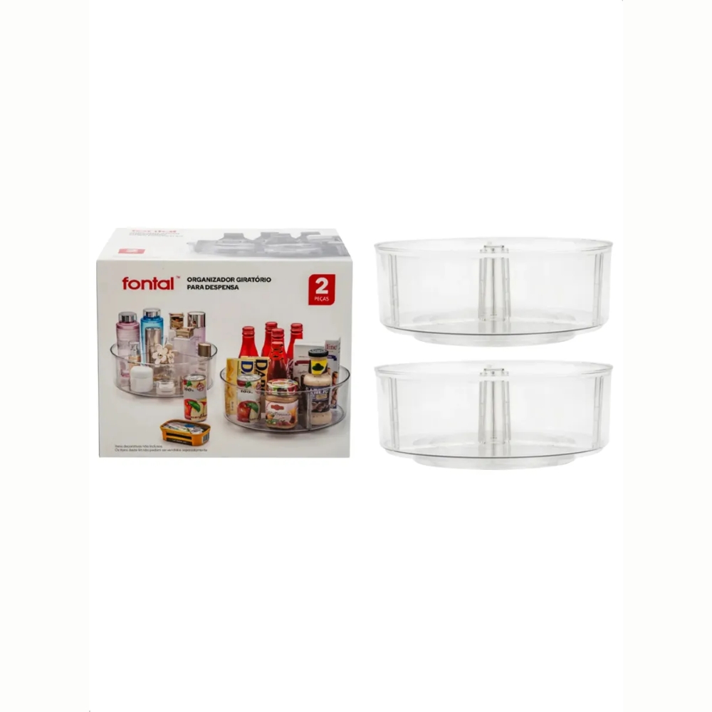 Org Giratorio Para Despensa 2 Pcs Fontal. Fácil de usar: Em sua Base possui esferas de aço inoxidável, permitindo que o cesto gire suavemente 360°,facilitando o acesso aos itens, mesmo aqueles armazenados nas prateleiras superiores. Além disso, sua parte externa alta impede que os itens deslizem enquanto a bandeja gira. DIVISÓRIAS REMOVÍVEIS - A bandeja giratória possui três divisórias removíveis que podem ser facilmente retiradas do organizador. Existem três partes divididas para separar itens