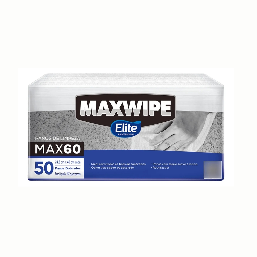 Com 50 folhas, o Maxwipe Max60 é ideal para uso em cozinhas, escritórios, áreas comerciais, ambientes profissionais e domésticos, proporcionando limpeza eficaz em diferentes superfícies.