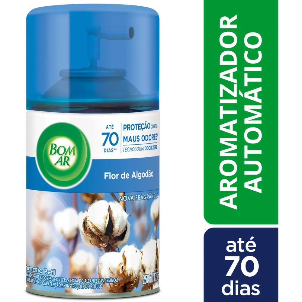 O Refil Aromatizante Bom Ar Freshmatic Flor de Algodão 250 ml proporciona uma fragrância suave, fresca e aconchegante, deixando o ambiente sempre perfumado e agradável. Com aroma inspirado na sensação de roupas limpas, a Flor de Algodão traz conforto e bem-estar para qualquer espaço.