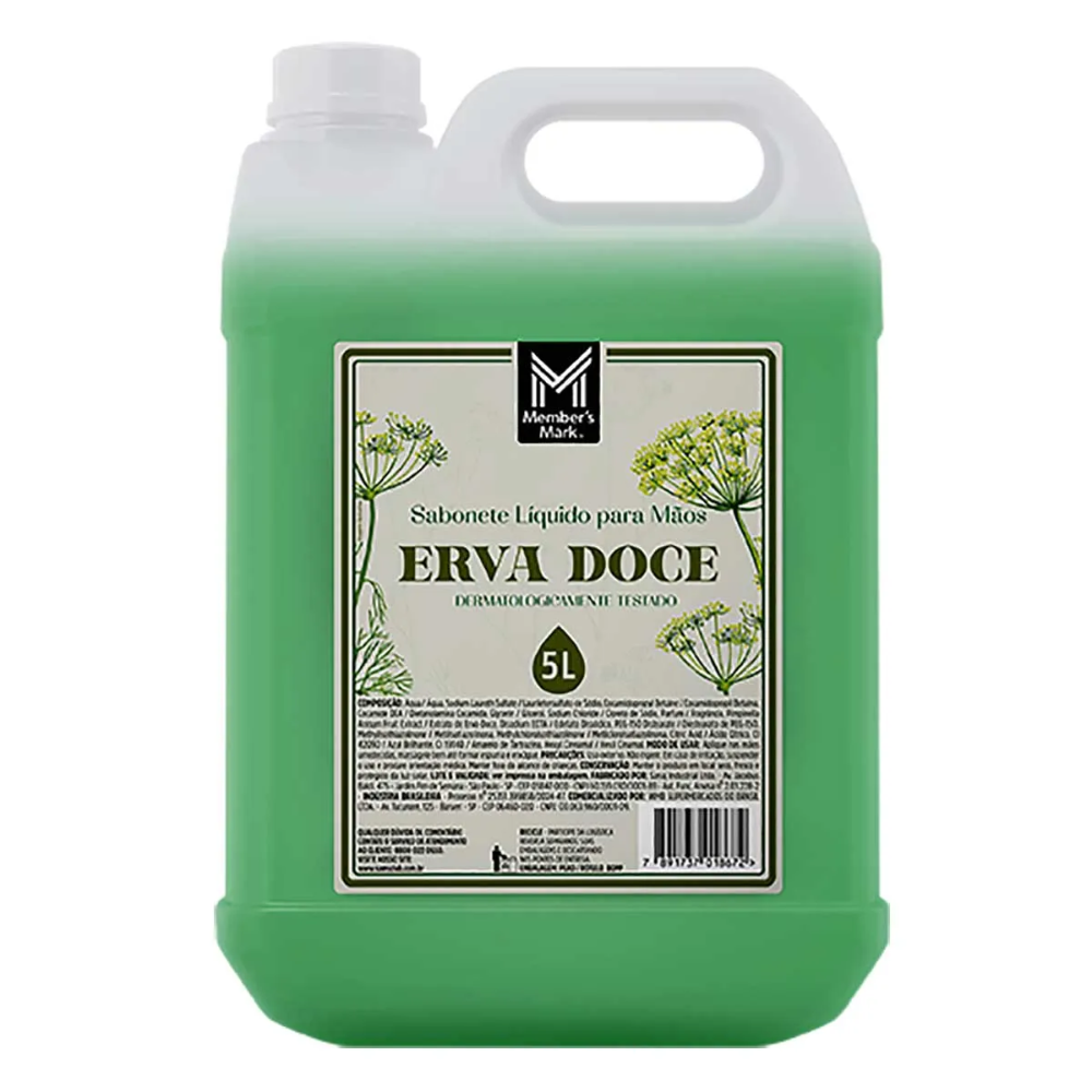O Sabonete Líquido para Mãos Erva Doce Members Galão 5L é a escolha perfeita para quem busca praticidade, rendimento e cuidado no dia a dia. Sua fórmula suave limpa profundamente sem agredir a pele, deixando as mãos macias e delicadamente perfumadas com o aroma refrescante de erva doce.