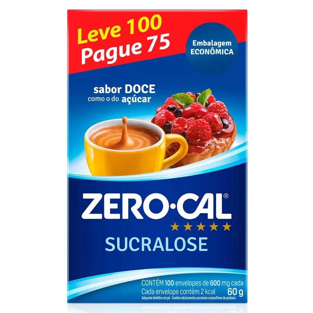 O Adoçante Zero-Cal Sucralose Sachê Leve 100 Pague 75 Unidades é ideal para quem deseja adoçar bebidas e alimentos sem adicionar calorias. Produzido à base de sucralose, oferece sabor doce equilibrado, sem gosto residual.